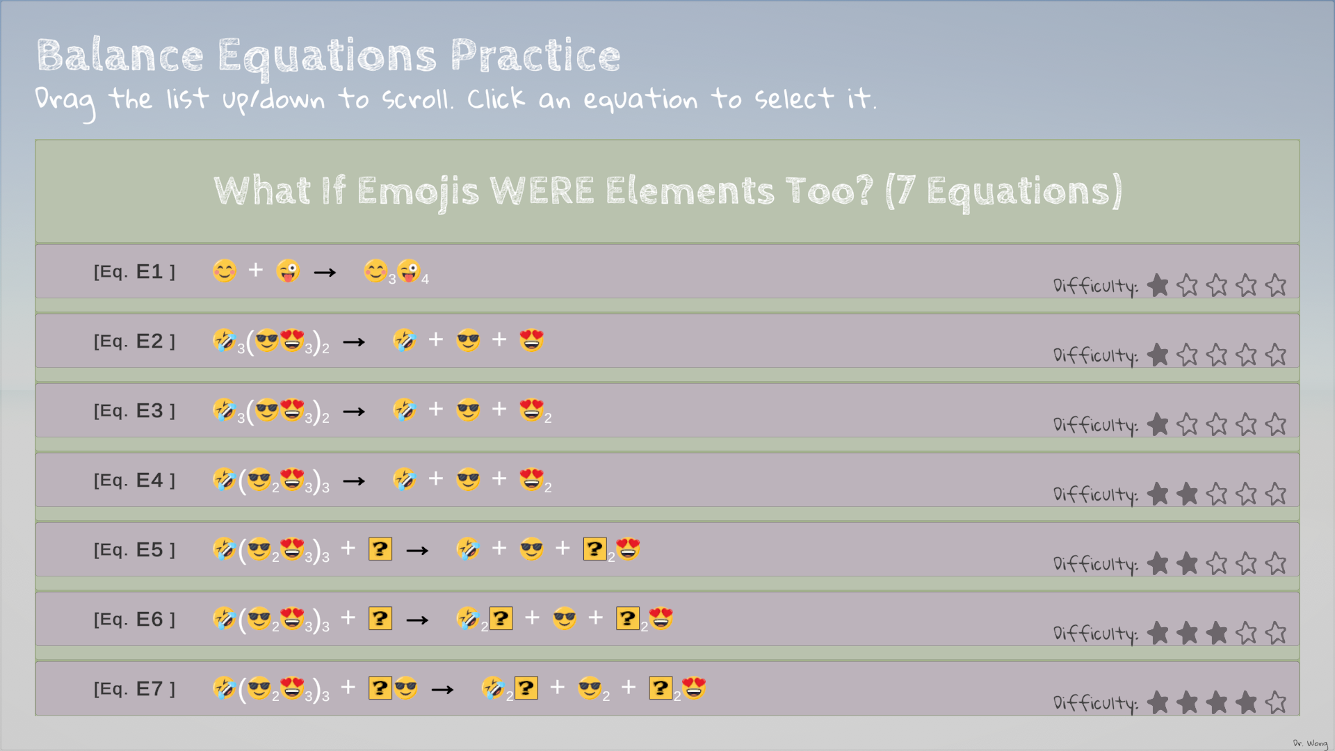 - Try out the first several Emoji equation as drills.